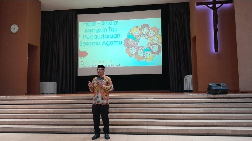 “Tokoh agama memiliki peran krusial dalam menyampaikan pesan damai dan toleransi kepada umatnya. Jika ada konflik usahakan untuk mengedepankan dialog dalam menyelesaikan potensi konflik sekecil apa pun di masyarakat,”ujar KH.Saumun Mantan Camat yang sekarang sebagai ketua FKUB Kota Adm Jakarta Barat saat memberi sambutan pada acara halal bihalal yang diselenggarakan HAAK Gereja Maria Bunda Karmel, Senin,27/4/2026.