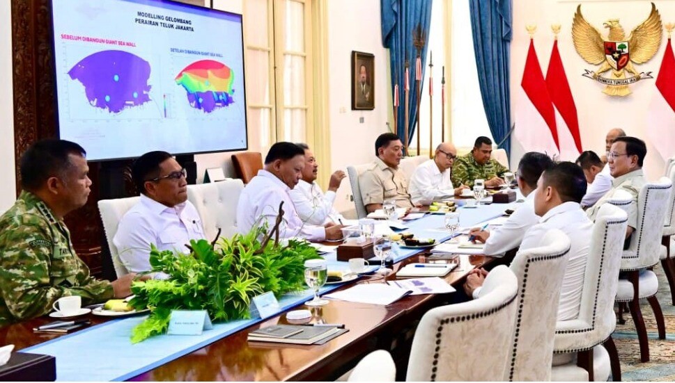 Jakarta, Beritàkotanews.id : Presiden Prabowo Subianto memimpin rapat terbatas dengan sejumlah Menteri Kabinet Merah Putih terkait dengan pematangan rencana pembangunan tanggul laut raksasa (giant sea wall) sebagai proyek strategis nasional yang diharapkan mampu melindungi kawasan pesisir utara Jawa. Rapat tersebut digelar di Istana Merdeka, pada 20 April 2026.