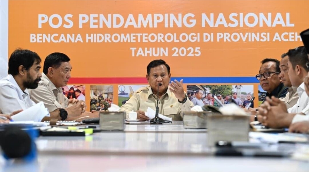 Aceh, Beritakotanews.id : Usai meninjau langsung kondisi terdampak bencana di sejumlah lokasi di Aceh, Presiden Prabowo Subianto memimpin rapat terbatas (ratas) mengenai penanganan dan pemulihan bencana yang melanda Aceh, Sumatra Utara, dan Sumatra Barat. Ratas tersebut berlangsung di Pos Pendamping Nasional Penanganan Bencana Alam Aceh yang berlokasi di Pangkalan TNI AU Sultan Iskandar Muda, Aceh Besar, pada Minggu, 7 Desember 2025.