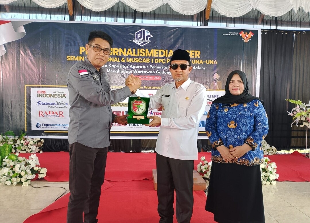 TOUNA, SULTENG, Beritakotanews.id : Bupati Kabupaten Tojo Una-una, Ilham Lawidu, bersama Wakil Bupati Hj. Surya, S.Sos., M.Si, menghadiri Musyawarah Cabang I (Muscab) Dewan Pimpinan Cabang (DPC) Pro Jurnalismedia Siber (PJS) Tojo Una-una yang dirangkaikan dengan Seminar Nasional, Rabu (1/10/2025), di Marina Cottage’s, Ampana.