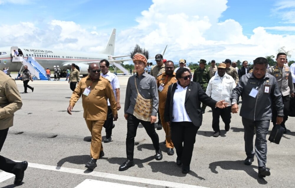Turut hadir dalam peninjauan ini antara lain Menteri Koordinator Bidang Politik dan Keamanan Djamari Chaniago, Wakil Menteri Dalam Negeri Ribka Haluk, Kepala Badan Pengarah Percepatan Pembangunan Otonomi Khusus Papua (BP3OKP) Papua Tengah Petrus Waine, serta Plt. Sekretaris Wakil Presiden Al Muktabar.