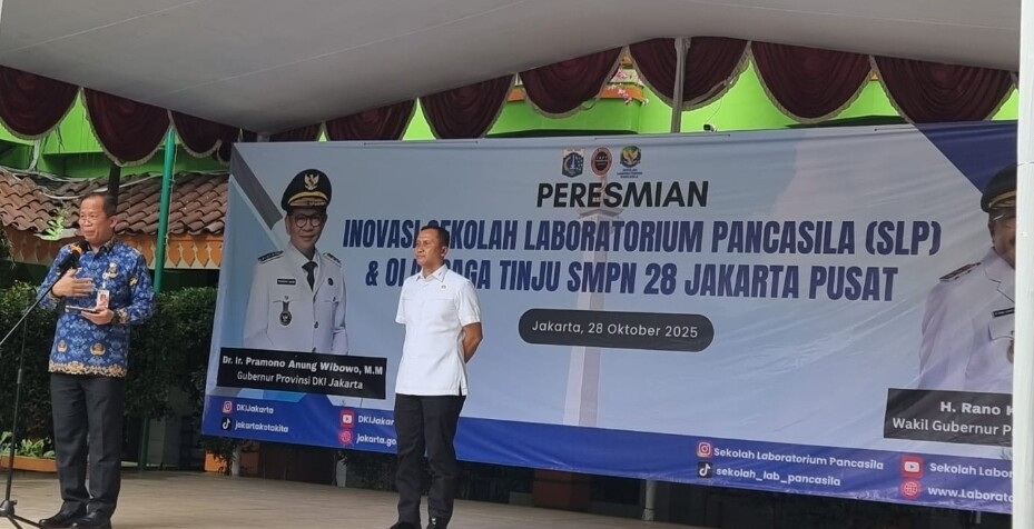 Grand Launching Inovasi Sekolah Laboratorium Pancasila (SLP) yang bertempat di SMPN 28 Johar Baru Jakarta Pusat oleh Askesra Ali Maulana Hakim mewakili Gubernur DKI yang berhalangan hadir, pada Selasa, 28/10/2025 dihadiri oleh beberapa undangan.