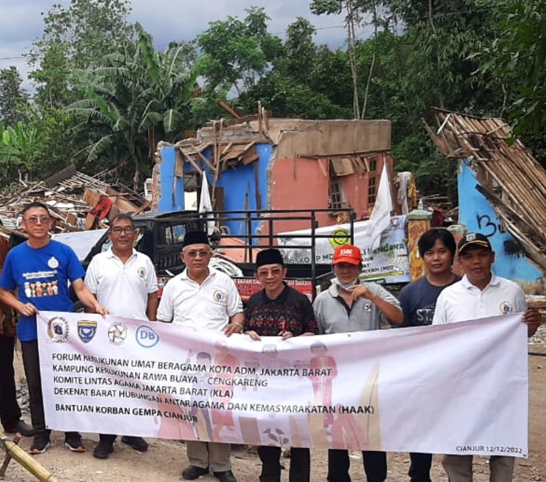 Forum Kerukunan Umat Beragama (FKUB) Jakarta Barat bersama kampung Kerukunan Rawabuaya, dan PMI mendistribusikan bantuan sosial untuk para korban gempa yang sampai saat ini masih banyak di posko-posko pengungsian.