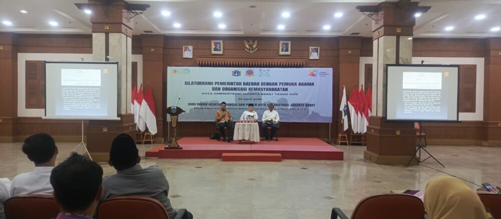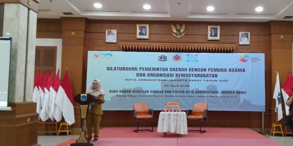 Jakarta, Beritakotanews.id : Suku Badan Kesatuan Bangsa Kota Administrasi Jakarta Barat memfasilitasi kegiatan Silaturahmi Pemerintah Daerah dengan Pemuka Agama bersama Organisasi Kemasyarakatan se Kota Adm Jakarta Barat untuk menyatukan langkah dalam menjaga keharmojisan Pemda dengan Toga dalam berbangsa dan bernegara, pada Senin, 20/4/2026 di Aula Ali Sadikin kantor walikota.