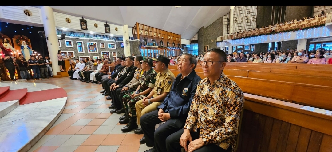 “Kami bersama Forkopimko Jakarta Barat, Pak Dandim, Pak Kapolres, Kejari, FKUB dan eleman lainnya mengucapkan selamat Natal tahun 2023, semoga di Natal tahun ini seluruh jemaat yang merayakan Natal diberikan kekuatan, kesehatan dan senantiasa selalu dalam lindungan tuhan yang maha kuasa. Kami juga mohon doanya kepada seluruh jemaat agar Bangsa dan Negara yang sama sama kita cintai diberikan kekuatan, kesuksesan dalam pesta demokrasi yang saat ini sedang dilaksanakan.” kata Walikota Uus Kuswanto.