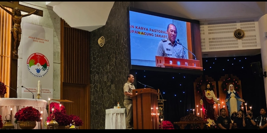 Rombongan wali kota dan Forkopimko menuju Gereja Santo Andreas, Jalan Komplek Green Garden, blok J5 No 1, Kelurahan Kedoya Utara Kecamatan Kebon Jeruk.