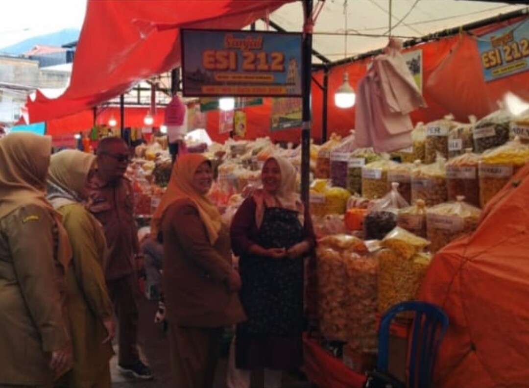 Lurah Benteng Pasar Atas, Novriwati, bersama para stafnya melakukan kunjungan langsung ke salah satu sentra kuliner khas Bukittinggi, yakni UMKM Keripik Sanjai Esi 212 di Blok Sanjai.