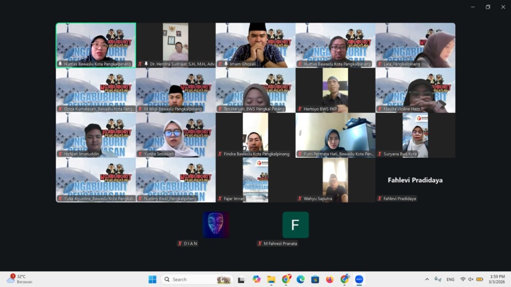 Pangkal Pinang.BeritaKota – Bawaslu Kota Pangkalpinang pada Selasa (03/03/2026) menggelar Ngabuburit Pengawasan secara daring dengan tema “Peningkatan Kapasitas SDM Pengawas Pemilu: Teori Konstitusi Nusantara dan Etika Elektoral bagi Demokrasi Indonesia.”