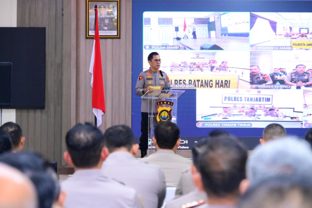 Kegiatan yang dilaksanakan di Aula Lantai III Gedung Siginjai Mapolda Jambi tersebut dipimpin langsung oleh Kapolda Jambi Irjen Pol. Krisno H. Siregar serta dihadiri oleh Wakapolda Jambi Brigjen Pol. B. Ali, Irwasda Polda Jambi Kombes Pol. Jannus Parlindungan Siregar, para pejabat utama, Kapolres jajaran, serta personel Polda Jambi dan jajaran baik secara langsung maupun virtual.