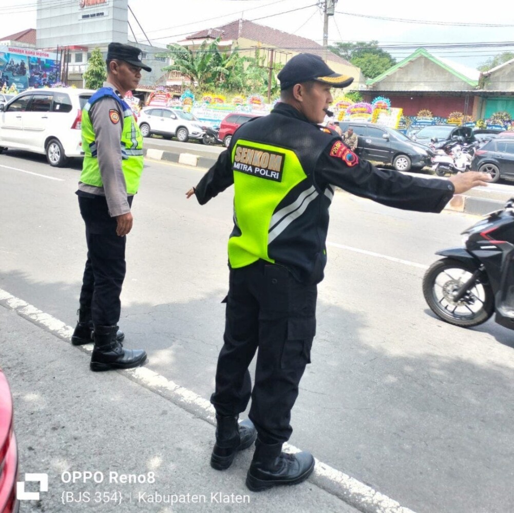KLATEN – Beritakotanews.id.: Senkom Mitra Polri Wilayah 1 Kabupaten Klaten melaksanakan pengamanan dan pengaturan lalu lintas bersaama TNI-POLRI di sepanjang jalur menuju rumah duka almarhum Wakil Bupati Kabupaten Klaten, Benny Indra Ardhianto, yang wafat pada Sabtu (7/2/2026).