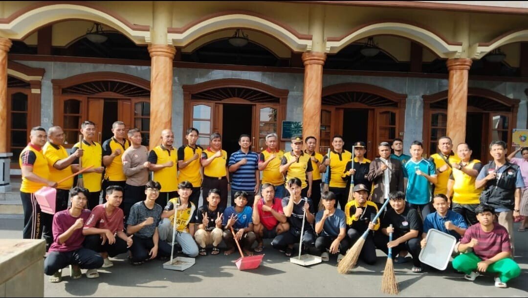Jajaran Polsek dengan penuh semangat bebersih mesjid dalam rangka Korve mempererat silaturahim.
