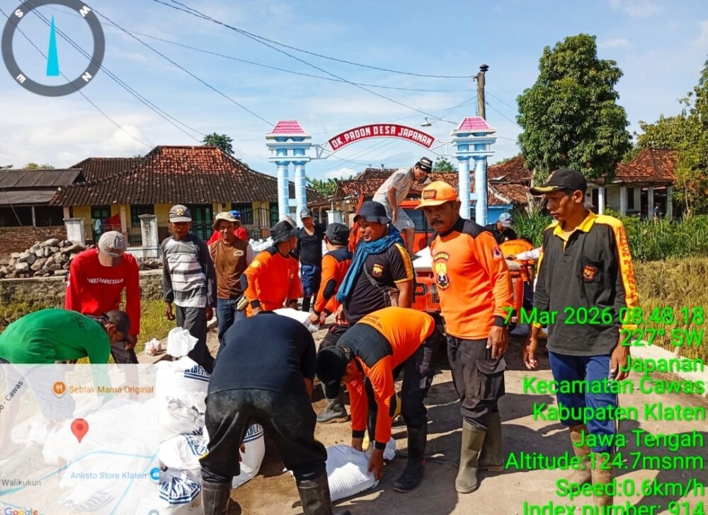 “Perbaikan tanggul dilakukan sejak Kamis hingga Jumat (5–6 Maret 2026). Untuk titik di Dukuh Padon Desa Japanan, pengerjaan mulai dilaksanakan pada Jumat dengan melibatkan berbagai unsur,” jelasnya.
